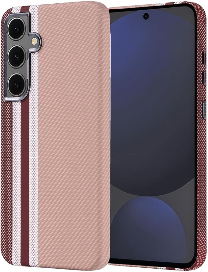 Samsung Galaxy S24 FE ile Uyumlu Kılıf Magsafe Şarj Özellikli Karbon Fiber Görünümlü Nekst Kapak [ Tam Uyumlu, Karbon Fiber Görünümlü] ] – Gold