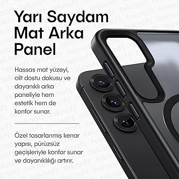 Mat Arka Yüzey: Matlaştırılmış, yarı saydam ve sert arka yüzeyiyle cihazınıza zarif bir görünüm kazandırır. Kolay temizlenebilen bu hibrit malzeme, güçlü darbelere karşı etkili koruma sağlar.