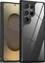 Samsung Galaxy S25 Ultra için Şok Emici Silikon Kenarlı Şeffaf Kılıf Arkası Sararmaya Karşı Sert PC Yapılı Parmak İzi Tutmayan Çizilme ve Darbelere Dayanıklı Premium Hibrit Kılıf (Siyah)