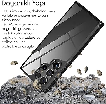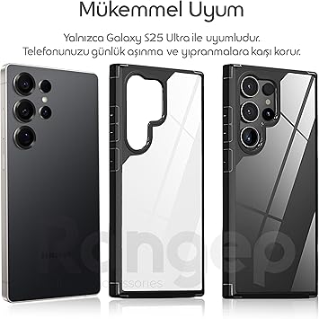 Sert ve Şeffaf Arka Panel: Arka paneli sert şeffaf polikarbonat malzemeden üretilmiştir, s25 ultra kılıf telefonunuzun orijinal tasarımını ve rengini net bir şekilde sergiler. Çizilmelere karşı dayanıklı olup, uzun süre şeffaflığını koruyarak hem güvenlik hem de estetik sağlar.