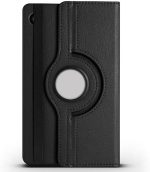 Samsung Galaxy Tab A9 Plus ile Uyumlu Kılıf 360 Derece Dönen Standlı PU Deri Kapaklı – Siyah