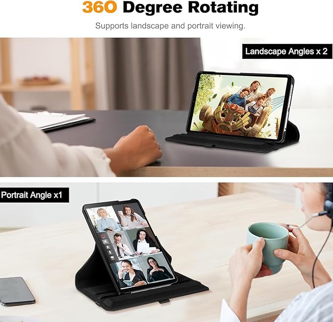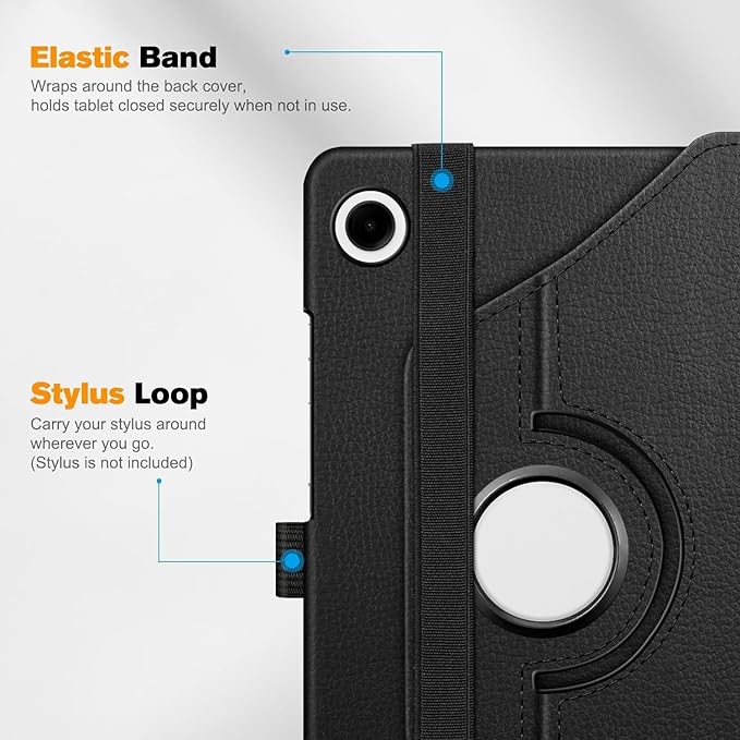 Samsung Galaxy Tab A9 Plus X210/Galaxy Tab A11+ Yatay ve Dikey Standlı 360 Derece Döner Tablet Kılıfı Siyah