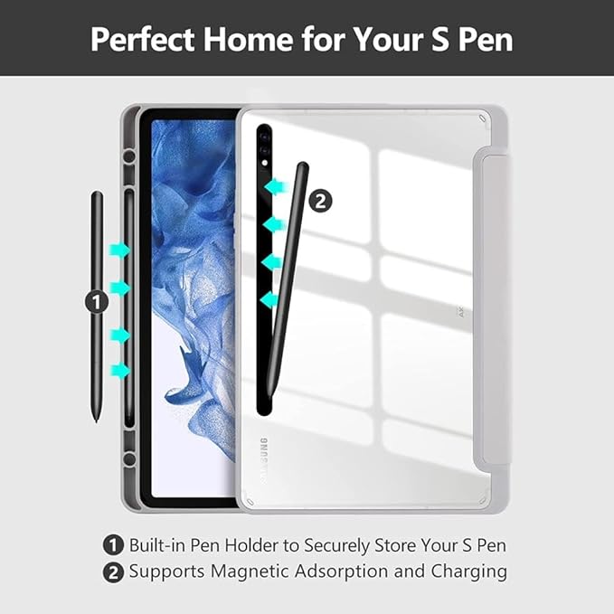 Samsung Galaxy Tab S10 FE+ Plus ile uyumlu Kılıf Grafiti Şeffaf Kalem Bölmeli(12.4inç Değildir) Gri