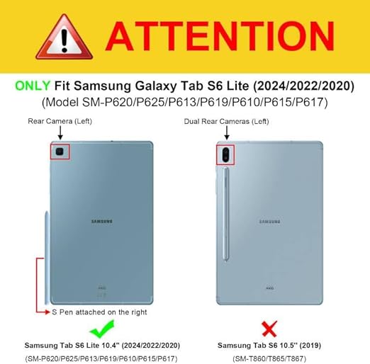 Samsung Galaxy Tab S6 Lite 10.4 SM-P610/P613/P615/P619 2022 ve 2020 için özel olarak tasarlanmıştır. Diğer Samsung Galaxy Tablet modelleri için uygun değildir. Lütfen satın almadan önce tabletin model numarasını kontrol edin.