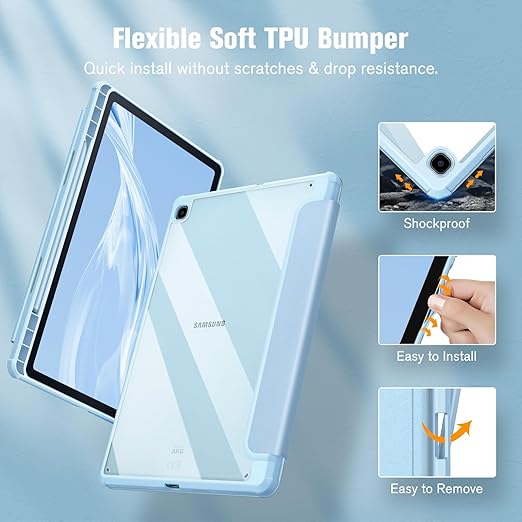 Samsung Galaxy Tab S6 Lite 10.4 2022/2020 SM-P610/P613/P615/P619 için hibrit kılıf – Şeffaf sert kapaklı koruyucu kılıf ve kalem tutuculu darbeye dayanıklı kapak, gök mavisi