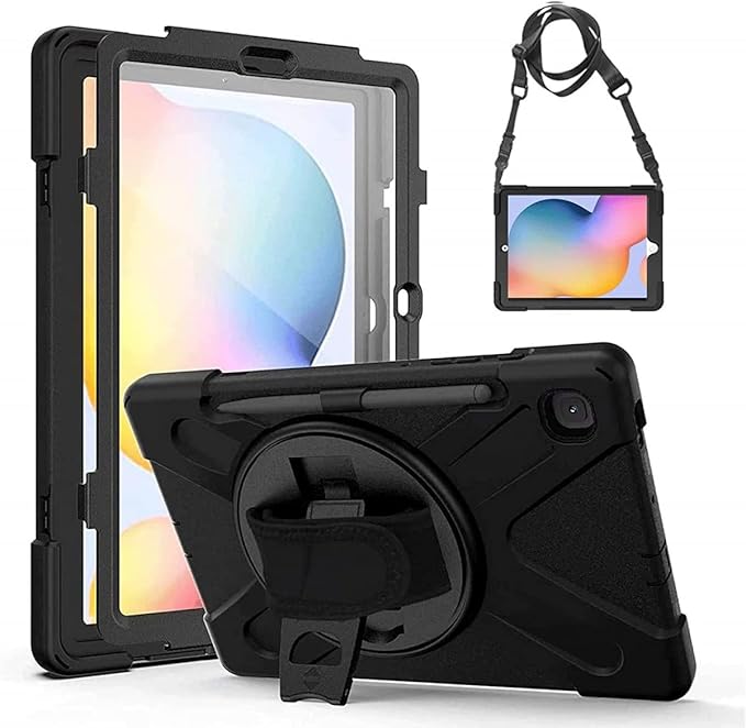 Samsung Galaxy Tab S6 Lite P610 ile Uyumlu Kılıf Zore Defender Askı Aparatlı Tank Tablet Silikon Kapak – Siyah