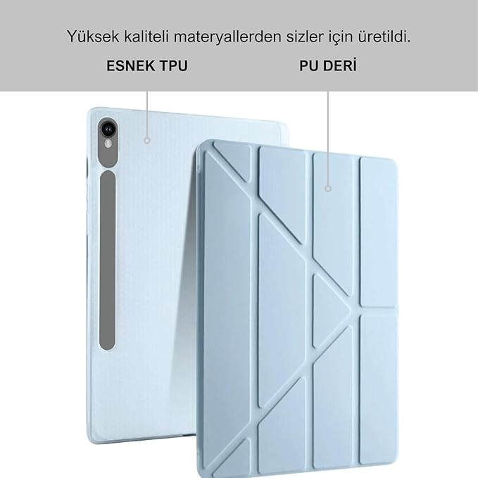 Samsung Galaxy Tab S9 FE 10.9 inç Uyumlu Smart Kılıf, S Pen Kalemlikli, Trifold, Esnek, Mat, Darbeye Tam Dayanıklı Tablet Kılıfı (Açık Mavi)