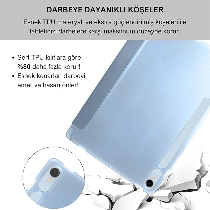 Otomatik Uyku Modu: Yerleşik manyetik şerit, kapağı açıp kapattığınızda tabletinizi otomatik olarak uyandırır veya uyku moduna alır. Bu şekilde cihazınızı korur ve pil ömrünü uzatır.