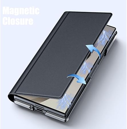 Samsung Galaxy Z Fold 7 için kılıf, katlanabilir telefon kapağı, hakiki deri, manyetik kilitli, tutucu fonksiyonu, ultra ince kılıf, siyah, katlama 7