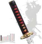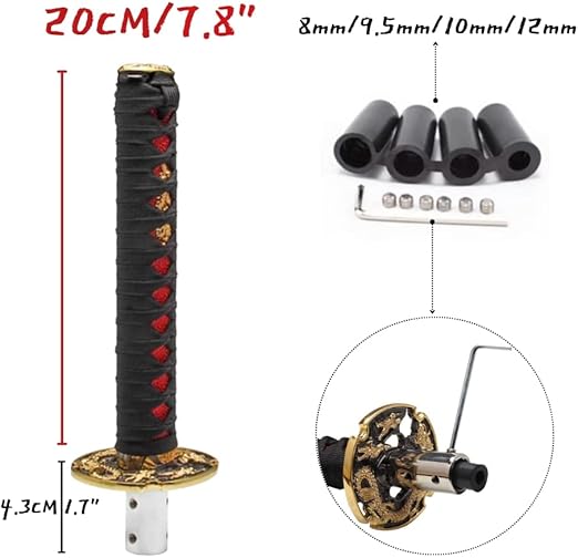Samuray Sword Katana Manuel Stick AT MT Araç Evrensel Özel Shifter Kol Kafası, 4 çeşit adaptörlü (siyah ve kırmızı, 20 cm)