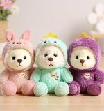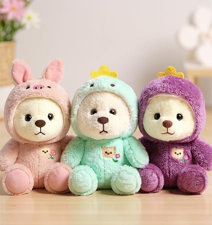 Şapkalı Peluş Ayıcık | Yumuşacık Uyku Arkadaşı, 35 cm, Pembe Renk | Çocuklar İçin Doğum Günü Hediyesi | CE Sertifikalı | Tavşan Kıyafeti Giyen Pufi Ayıcık
