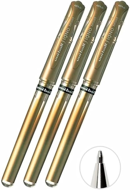 Sarı İmza Kalemi 3 Adet Uniball Signo Broad 1.0 mm Roller Pilot Kalem Um-153 Yaldızlı Davetiye Kalemi Mürekkepli