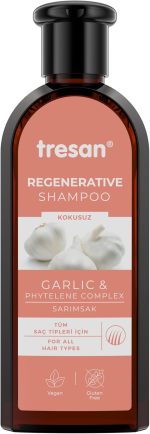 ✅Tresan Sarımsak Onarıcı Bakım Şampuanı içerdiği Panthenol ve sarımsak, beyaz ısırgan otu, su yosunu, sarmaşık, biberiye, dulavrat otu, çam ve arnikadan oluşan Phytelene Kompleks’ i ve muhteşem kokusu ile günlük kullanıma ve tüm saç tiplerine uygundur.