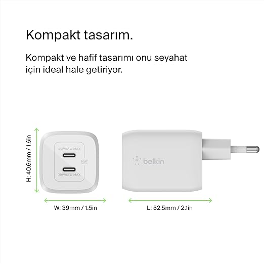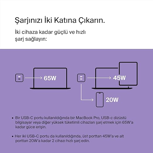 Şarj bölümü USB-C GAN 65WŞarj bölümü USB-C GAN 65W