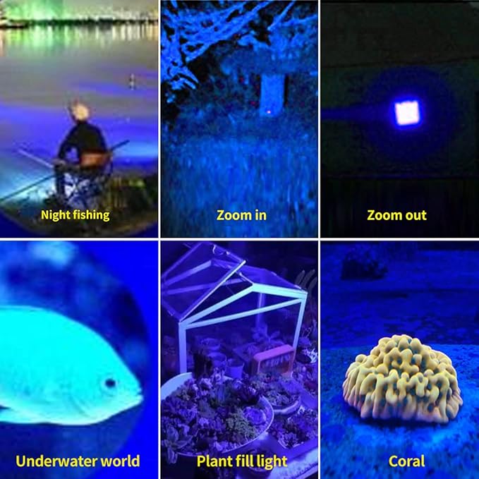 395 NM UV el feneri: UV el feneri oda lekelerini kolayca bulabilir, gıdalardaki mantarları tespit edebilir ve kağıt paraların ve banknotların sahte olup olmadığını kontrol edebilir. Arabanızdaki lekeleri tespit etmek veya mineralleri aydınlatmak, vücut sanatı, akrepleri bulmak için yanınıza alabilirsiniz.