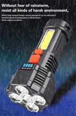 Şarjlı 5 Ledli Ultra Güçlü Profesyonel El Feneri Şarj Göstergeli Su Geçirmez COB Led Fener Işıldak Ultra Hafif