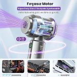 Uzun Süreli Pil ve Kolay Şarj: 6000 mAh kapasiteli (3×2000 mAh) fırçasız motor bataryasıyla; düşük hızda 25 dk, orta hızda 17 dk ve yüksek hızda 12 dk kullanım sunar. USB‑C şarj girişi ile 3–5 saatte tam dolum sağlar