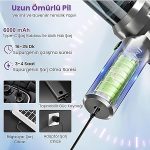 Şarjlı Araç Süpürgesi 16.000 pa – Üfleme Özellikli Mini Oto Süpürgesi 3 Kademeli – 6.000 mAh Şarj Kapasitesi, Çok Fonksiyonlu Süpürge Başlıkları ile Taşınabilir Kablosuz Süpürge
