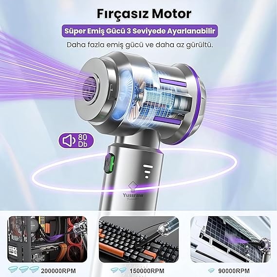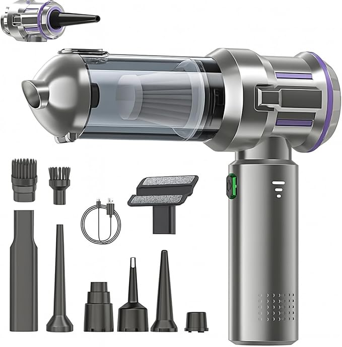 Şarjlı Araç Süpürgesi 16000pa – Üfleme Özellikli Mini Oto Süpürgesi 3 Kademeli – 6000 mAh Şarj Kapasitesi, Çok Fonksiyonlu Süpürge Başlıkları ile Taşınabilir Kablosuz Süpürge