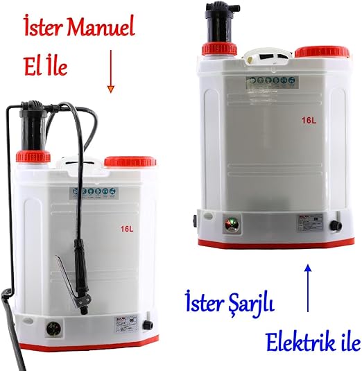 Şarjlı Ilaçlama Pompası 16 Lt Elektrikli Veya Manuel Mekanik Ağaç Dal Bağ Bahçe Bitki PülverizatörŞarjlı Ilaçlama Pompası 16 Lt Elektrikli Veya Manuel Mekanik Ağaç Dal Bağ Bahçe Bitki Pülverizatör