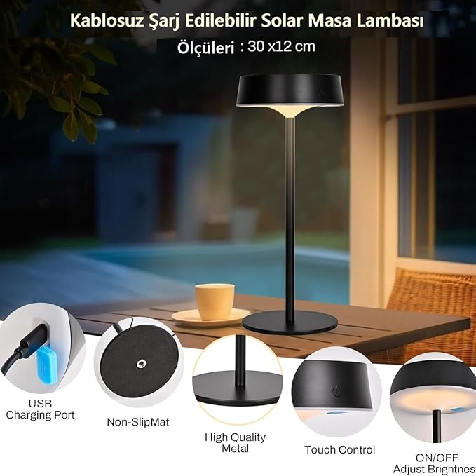 Solar Şarj : Masa Lambasını Güneş Enerjisiyle , yada USB kablosu ile elektrik ile şarj edebilirsiniz. Solar özelliği sayesinde güneş ışığı alabilecek aydıklaık ortamlarda kendi kendini şarj ederek kullanım süresini uazatacaktır