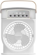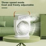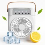 Şarjlı Mini Buharlı Hava Soğutucu, Taşınabilir Portatif Mobil Sulu Klima, 3 Rüzgar Hızı, 3 Sis Modu, Buzlu Vantilatör 5 Sprey Delikli ile LED Işıklı 26cm x 20cm – CRV-002 (CRV-002 – Beyaz)