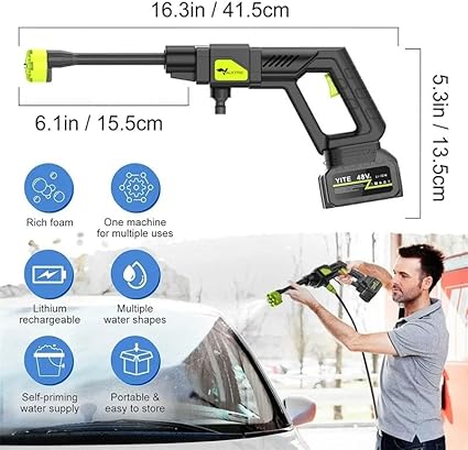 Şarjlı ve Yüksek Basınçlı İlaçlama Oto Yıkama ve Sulama Tabancası 6 Farklı Püskürtme 24V 15.000mAh Yüksek Kapasite