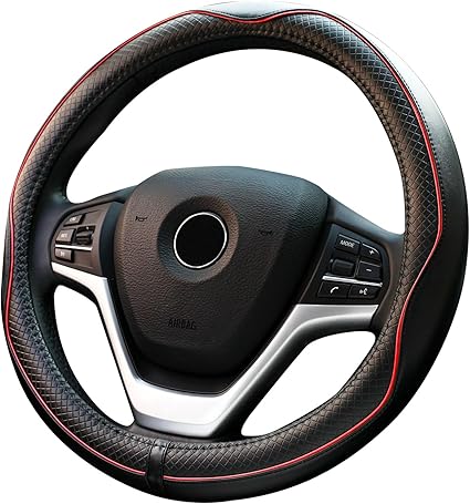 Siyah araç direksiyon kılıfı, mikrofiber deri direksiyon kılıfı, evrensel boyut 37 – 39 cm, kaymaz, kırmızı çizgi