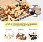 Pürüzsüz Yüzey: Satranç tahtası ve satranç taşları ince işçilikle titizlikle işlenmiştir, bu da rahat bir oyun deneyimi için pürüzsüz bir yüzey sağlar.