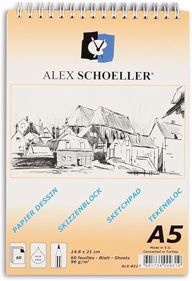 SCHOELLER A.ESK.BLK.090.05 SİPRALLİ .ESKİZ BLOK.90gr.A5 60 ypr.DİK ALX-821