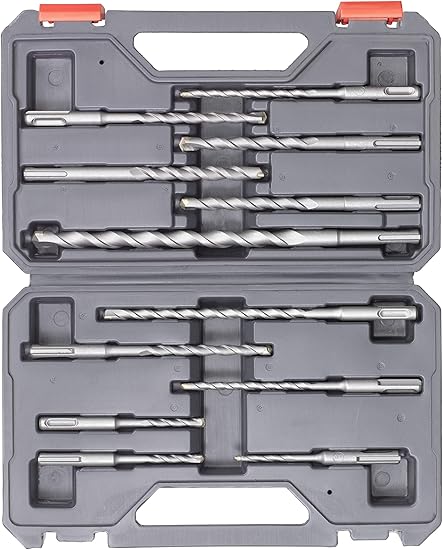 SDS-Plus darbeli matkap seti, 12 parçalı taş ve beton matkap seti, plastik çanta içinde