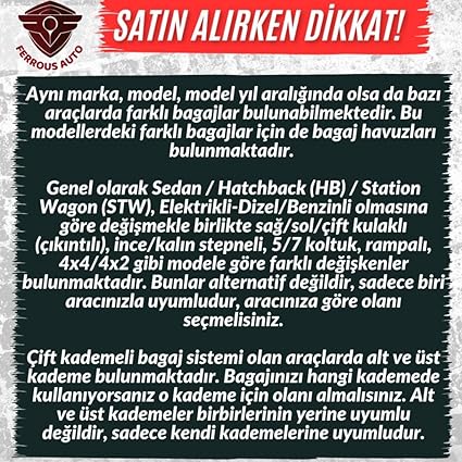 Kategoriler: Bagaj Havuzları, İç Aksesuarlar, Oto Aksesuarları, Otomotiv, Otomotiv Parçaları ve Aksesuarları, Paspaslar ve Halılar