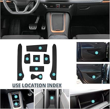 Seat Cupra Born 2022 2023 2024 ile uyumlu kauçuk paspaslar, kapı yarığı matı, Cupra Born kaymaz paspaslar, orta konsollar, kaymaz paspaslar, kapı dikişleri, mat, bardak tutucu, mat, Cupra Born