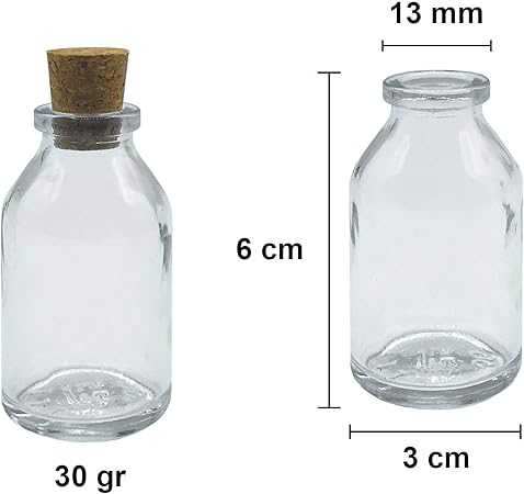 Şeffaf 25 ml / 25 cc Mantar Tıpalı Boş Cam Şişe 12 Adet