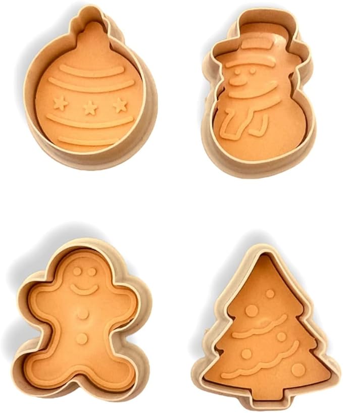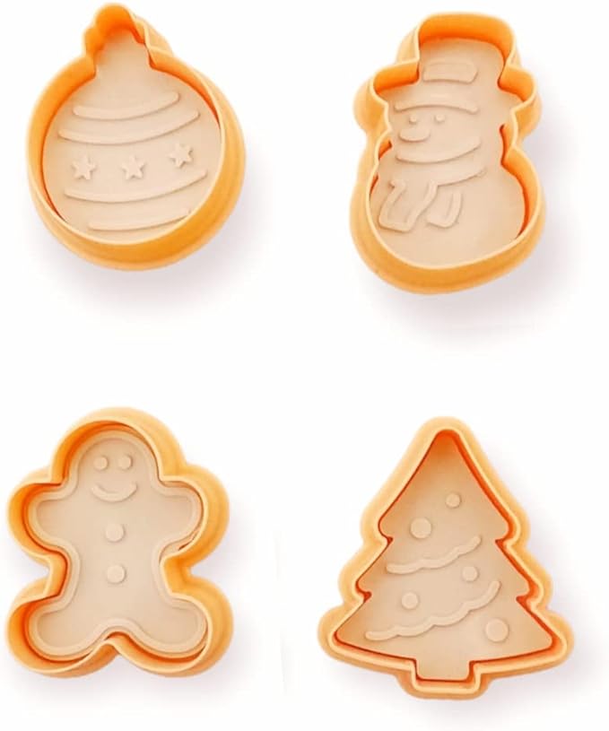 Şekilli Adam Çam Ağacı Basmalı Kurabiye Kalıbı Gingerbread Man Desenli Şeker Hamuru Kesici Aparat (Konsept 1, Krem-Turuncu)