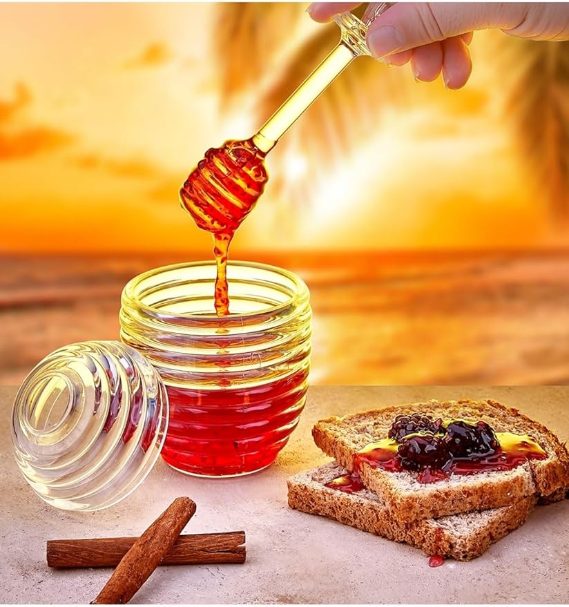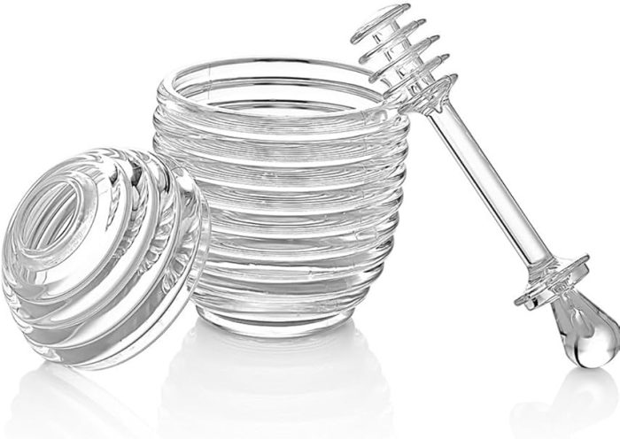Şekilli Kaşıklı 3 Parça Kristal Bal Kavanozu Mika Kavanoz Bal ve Reçel Kavanoz Kahvaltılık