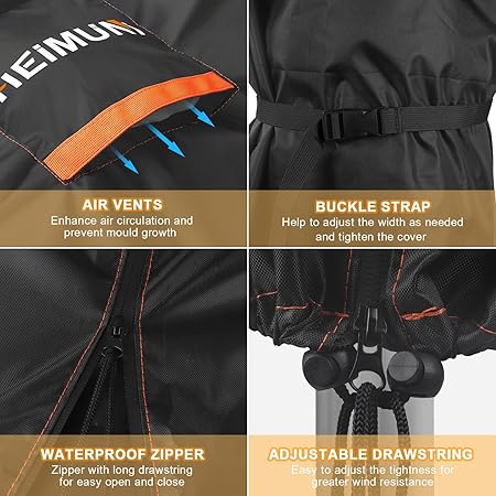 ÇOK FONKSİYONLU BAHÇE ŞEMSİYESİ KAPAKLARI: Bu şemsiye örtüleri su geçirmez, UV ışınlarına ve yırtılmaya karşı dayanıklıdır ve 5000Pa’ya kadar su basıncına dayanabilir, bu da şemsiyenin ömrünü büyük ölçüde uzatır. Yağmur, güneş, toz ve düşen yapraklar artık sorun değil, şemsiye her mevsim temiz ve güvenli kalır