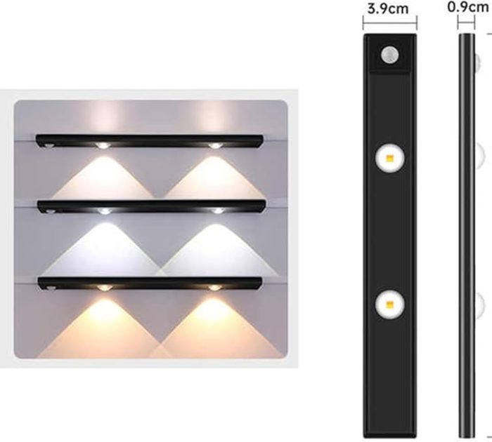Sensörlü Slim Led Kabin Armatürü Dekoratif Dim Edilebilir Usb Şarjlı Aydınlatma (Siyah, 20 CM)