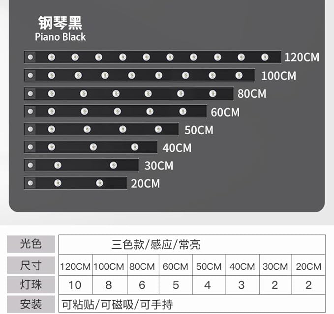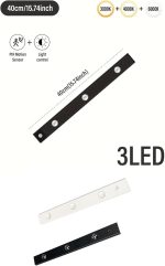 Sensörlü Slim Led Kabin Armatürü Dekoratif Dim Edilebilir Usb Şarjlı Aydınlatma (Siyah, 40 CM)