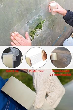 Sera Bandı Sera Naylonu Tamir Bandı UV Dayanıklı Yüksek Yapışkan PE Greenhouse Tape 50mm X 25 MetreUygunluk: 10 adet stokta