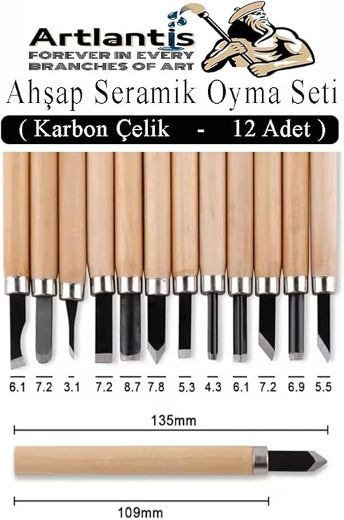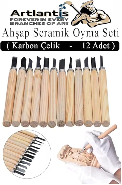 Seramik Oyma Seti 12 li 1 Paket İskarpela Seti Paslanmaz Çelik Bıçaklı Ağaç Oyma Heykel Hobi Kretuar Gravür