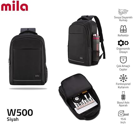 Seri W500 15.60” Ki3-01-003 Network 4 Reflektörlü Macbook,Mac Air Uyumlu Laptop Sırt Çantası -Siyah