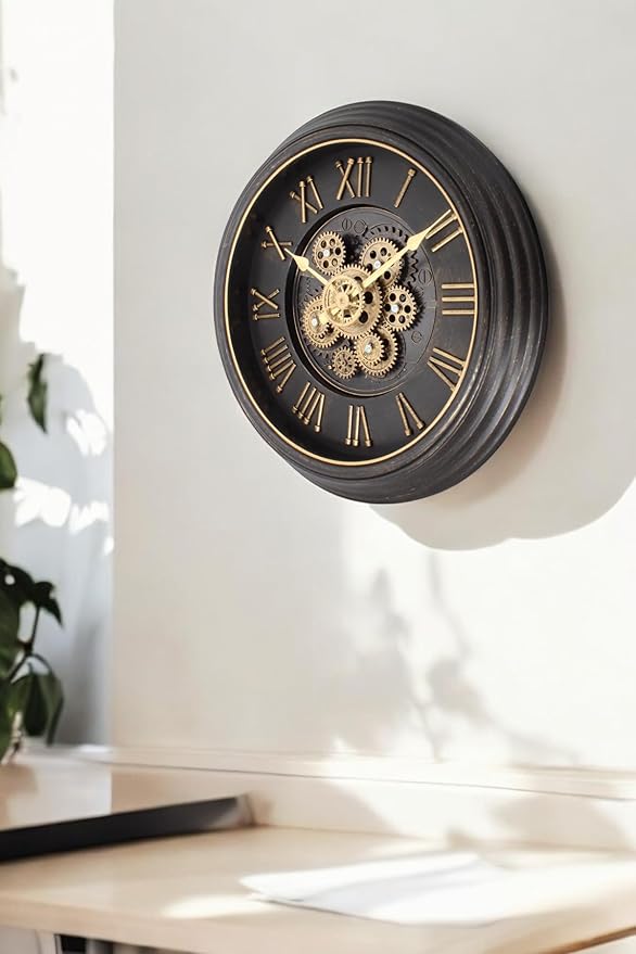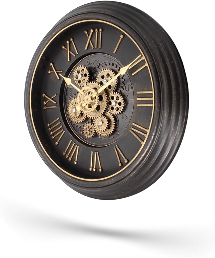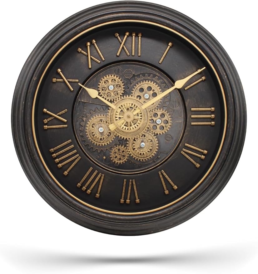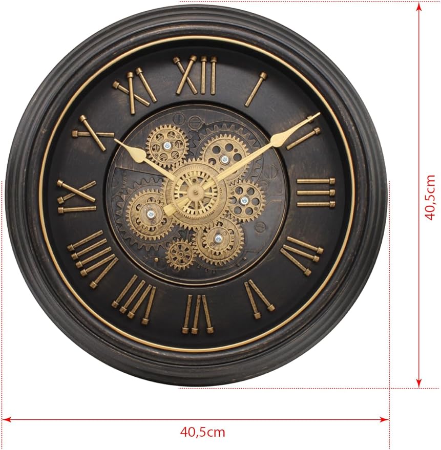 Serisi Antik Eskitme Kadranlı Döner Çarklı Ev ve Ofis Duvar Saati Roma Rakamlı 40 CM Siyah