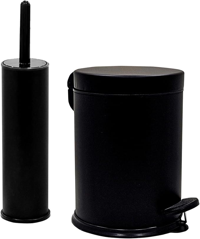 Serisi Ayak Basmalı Özellikli 2’li Banyo Seti 3 Litre Çöp Kovası ve Kolozet Fırçası Paslanmaz Siyah