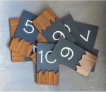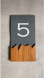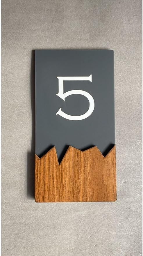 MODERN TASARIM: Gri-kahverengi renk kombinasyonuyla şık ahşap detaylı, kendinden yapışkanlı kapı numaraları, modern bir görünüm sağlar