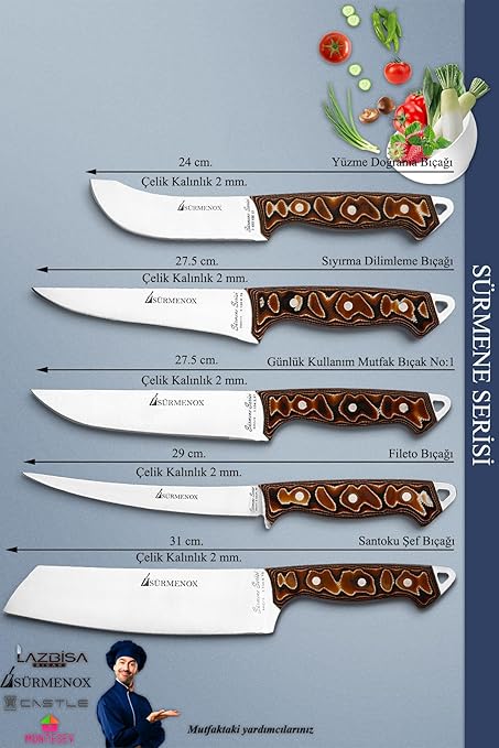 Serisi Mutfak Şef Bıçak Seti Et Ekmek Sebze Salata Fileto Bıçağı 5 Li Set Kahve (Mft-325)