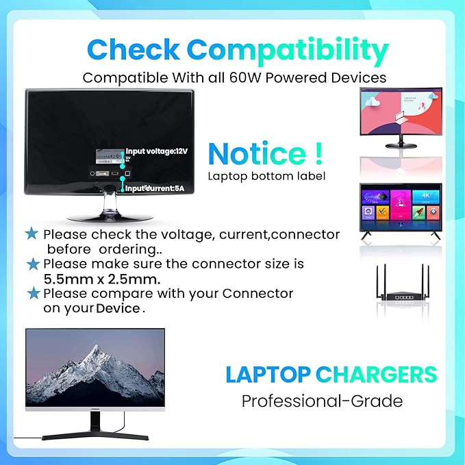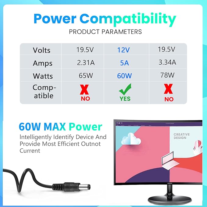 ⚡【ÖZELLİKLER】AC girişi: 110-240V, 50/60Hz; DC çıkışı: 12V 5A 60W (maks.)