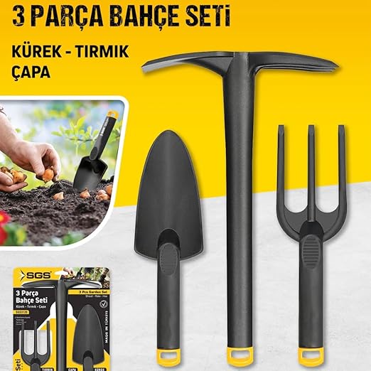 Üçlü Bahçe Seti (Kürek-Çapa-Tırmık), bahçe işlerinizi kolaylaştıracak kaliteli ve dayanıklı bir set olarak tasarlanmıştır. Kürek, çapa ve tırmık olmak üzere 3 farklı alet, tüm bahçe bakım ihtiyaçlarınızı karşılamak için bir araya getirilmiştir. Her bir ürün, ergonomik saplar ve sağlam malzemelerle donatılmıştır, böylece uzun süreli kullanımda bile mükemmel performans gösterir.