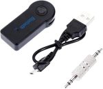 Ses Alıcısı, 3.5mm AUX Girişli, Kablosuz, USB Şarj, Siyah, Dahili Mikrofonlu, 10m Menzilli, Araç ve Ev Ses Sistemleri için