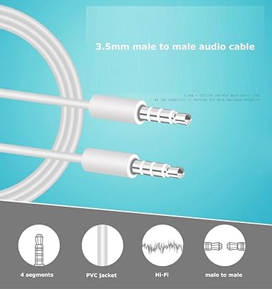 Ses Kablosu 1 Metre Oto Araç Teyp Kablo Müzik Bağlantı BEYAZ